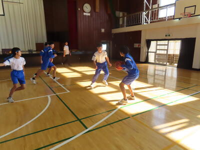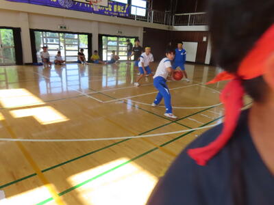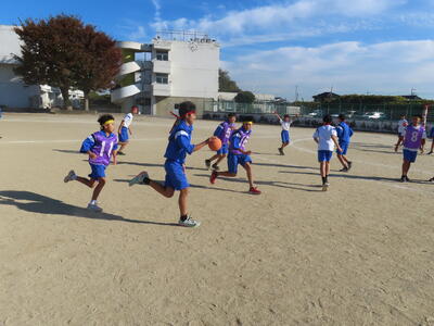 3年生男子の保体、バスケットボールです。ラグビーか?