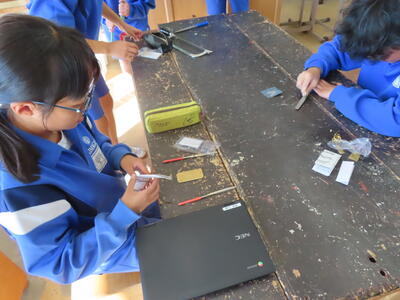 松の実学級の理科の授業です。理科室で金属について学んでいました。