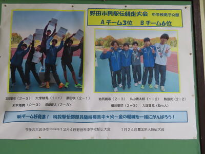 市民駅伝大会男子第3位、第6位、あおいそら実践文優秀賞!!!