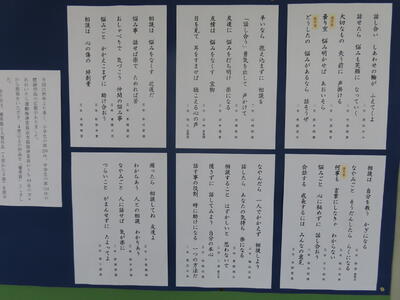今日も曇天の一日でした。教育相談期間4日目、明日は最終日です。このような天気の中、学校に足を運んでいただき、ありがとうございました。今日はお母さんと一緒に学校に来た、4歳の弟君と仲良くなりました。楽しかったです。そして、3年生の受験期が近づいてきたことを感じます。午前中、上級学校の先生に来校され、いろいろと相談に乗っていただきました。とてもありがたいことです。