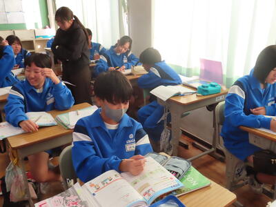 昨日で第3回定期テストが終了した関係で、国、社、数、理、英の5教科はテスト返しが中心になるだろうと考え、技能教科を中心に撮影しました。今日の日中は暖かく、校庭での体育も気持ちよく運動することができました。また、今日は出張者が多く、授業変更が多く、教員も生徒も大変だったかもしれません。さて、今月2回目の3連休です。身も心もリフレッシュして火曜日に顔を合わせたいと思います。