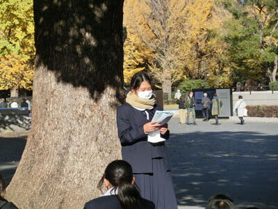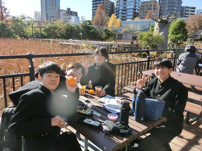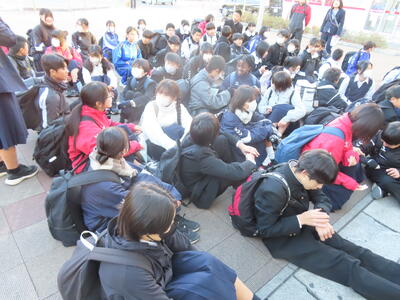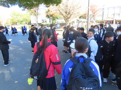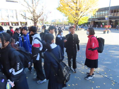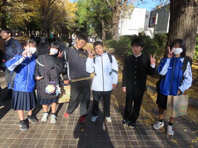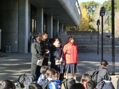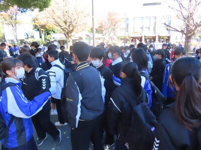 前日12月3日(水)はHP担当者が1日出張だったため、撮影することはできませんでした。この日は1年生の校外学習でした。東京 上野公園を班別で散策しました。とても寒い一日でしたが、楽しい時間を過ごすことができました。また、野田市中学校新人駅伝大会が行われ、本校男子Aチームが第2位という素晴らしい結果を残すことができました。寒い中、参加した全選手の皆さん、お疲れ様でした。1月には県大会につながる葛北新人大会が行われます。期待しています。