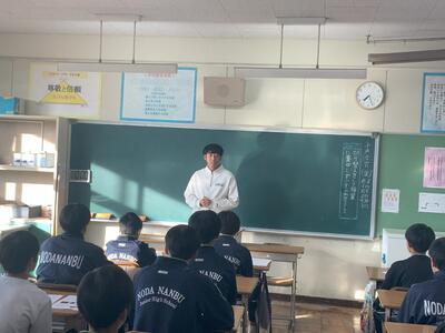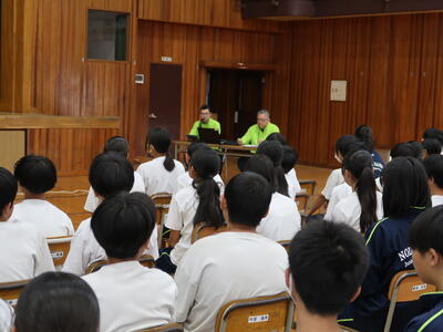 3日(金)野田ガスの方々を招き、1学年対象に環境教育講座が実施されました。近年、異常な暑さで問題となっている地球温暖化…。カーボンニュートラルなど、旬な話題をもとに、私たちが普段気をつけることは何か。「ゴミをできるだけ出さないこと」や、「給食をできるだけ残さない」などとても大切なことを学びました。