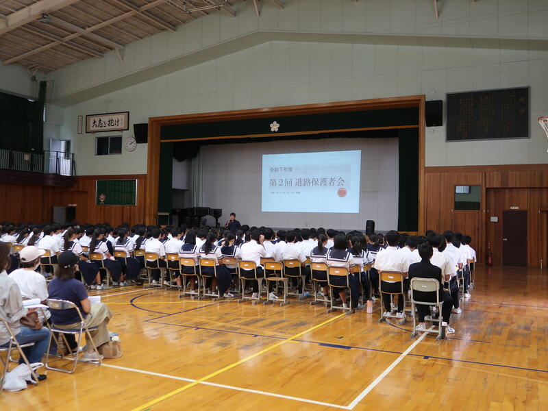 本日、第2回進路保護者会を実施しました。保護者会では今月末から実施される三者面談に向けて、公立行動学校の実施要項について、話しました。3年生にとっては、進路選択の重要な時期に入りました。3年生が「進学したい学校」を選択できるように、全職員でサポートしていきます。