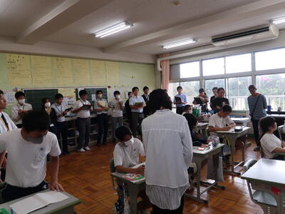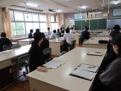 地域の中学校を訪問し、授業参観及び協議を行うことなどを通して、先輩教員の優れた実践や姿勢を学ぶ機会を設けるために、本校で教員対象の授業参観を行いました。多くの先生方が参加して、自校の実践に生かそうと取り組んでいました。