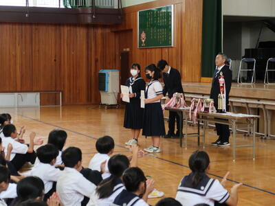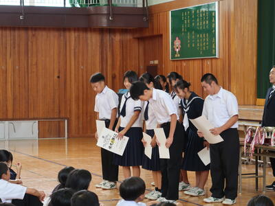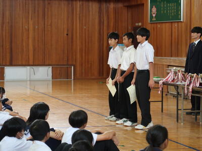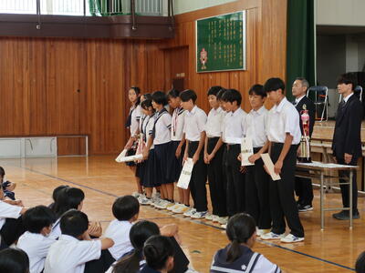 続いて、前期学業に対して、直向きに取り組んだ生徒を讃えました。定期テストで上位になった生徒、飛躍的に結果が向上した生徒を表彰しました。