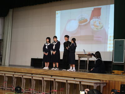 本日の献立は、2年生の家庭科「中学生に必要な栄養」の授業で、2年生の樽美さんが考案してくれたメニューです!