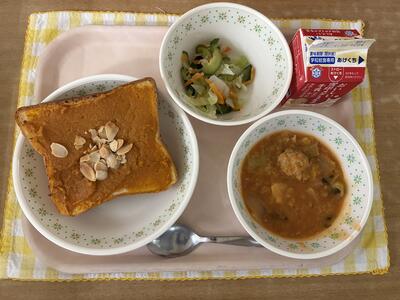 今日の給食は、生徒たちも楽しみにしていた「黒蜜きなこトースト」が主役です。