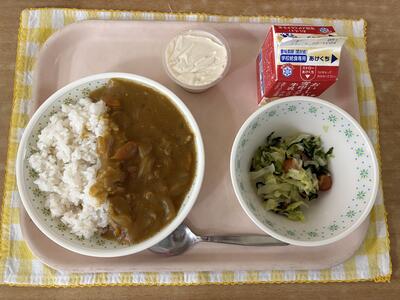 本日のメインは、給食の王道メニュー「カレーライス」です。 大きめにカットされたじゃがいもや人参、玉ねぎがゴロゴロと入っており、食べ応えは満点。お米は麦ごはんで、プチプチとした食感を楽しみながら食物繊維もしっかり摂ることができます。あるカレーの甘口が好きな私にとっては若干辛いかなと思える辛さでしたが、すっと飲み物のように食べてしまいました・・・・