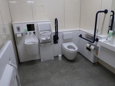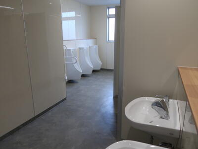 トイレ改修が第一弾が終了し、一部使えるようになりました。多目的トイレも完成し、とてもきれいです。非接触で入室時、自動で照明、換気扇が作動します。このきれいなトイレを大切に使っていきたいと思います。