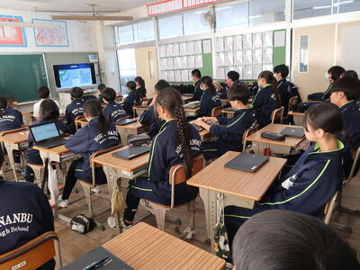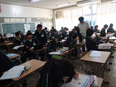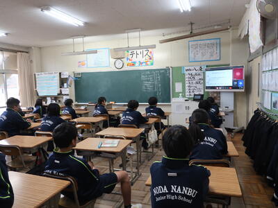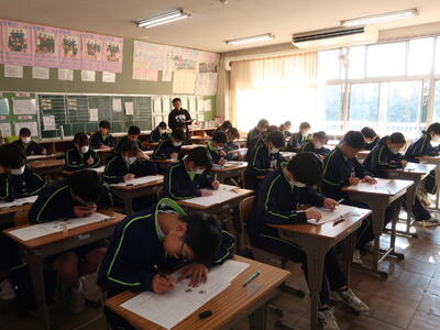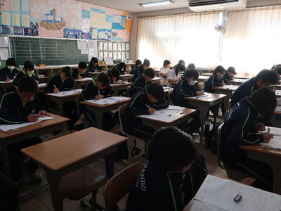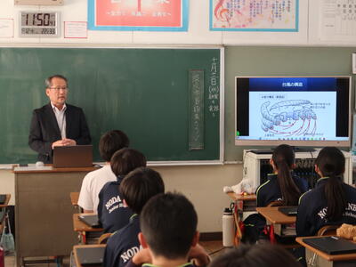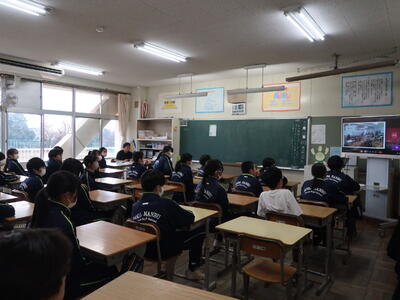 11月12日、2年生を対象に、市の防災安全課職員の方々を講師にお招きし、リモート形式で防災教室を実施しました。