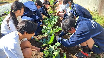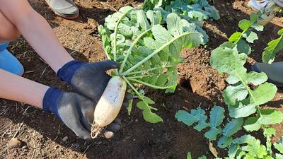 11月12日、秋晴れの空の下、大根掘りは、生徒たちの歓声と土の匂いに満ちた活気ある日となりました。土まみれになりながら、腰を落とし、生徒たちの顔には泥と汗、そして最高の笑顔が輝きました。この体験を通じて、食べ物がどのように作られ、育てられているかを肌で感じ、食への感謝の気持ちを深める貴重な学びの機会となりました。