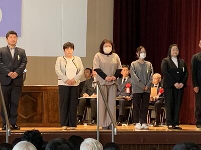 島会館で「ふれあいまつり」が行われ、3年生の小谷津さんが学校代表として人権作文を発表してくれました。