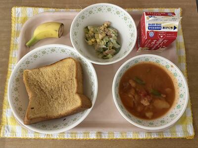 更新を楽しみにされている皆様に最初にお詫びを申し上げなければなりません。いつも掲載している給食の写真ですが、本日は事情により撮影することができませんでした。大変申し訳ございません。今日はぜひ、皆様の豊かな想像力で、文字から「本日の美味しさ」を味わっていただければ幸いです。