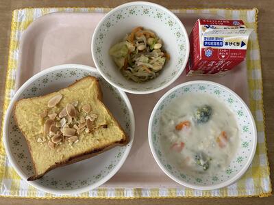 今日の給食は、生徒たちも楽しみにしていた「黒蜜きなこトースト」が主役です。