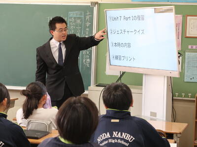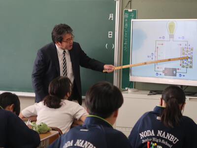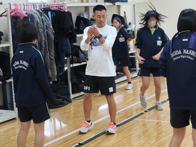 川瀬教諭・齊藤教諭(理科)、佐藤教諭(数学)、平田教諭(英語)、増田教諭(体育)が、それぞれ1・2年生のクラスで授業を展開しました 。野田市教育委員会や市内他校から講師の先生方をお招きし、専門的な視点から多くのご指導をいただきました 。