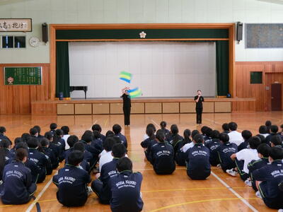 「お仕事はどんなことをしていましたか」、「今、幸せなことは何ですか」、「中学校時代の話を聞かせてください」など、質問をしている生徒の目はキラキラしていました。「笑い」も「真剣な雰囲気」もあり、大変有意義な授業になりました。