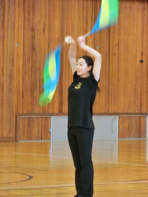 豊田さんのアクロバティックな動きが演奏を引っ張り、ガードの華やかさが演技に花をそえます。