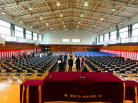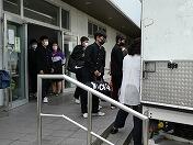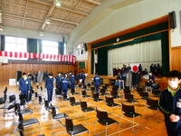 制服で登校し、教室で最終確認。その後、体育館へ移動して出発式を行いました。