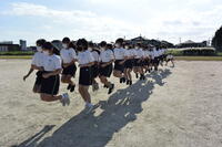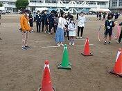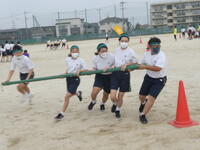 応援合戦中に雨が上がり、グランドに出て「長縄跳び」と「学級対抗全員リレー」の2種目を行いました。