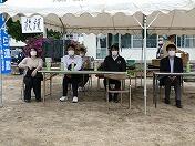 4校時終了とほぼ同時に雨が降り出し、午後の開催が危ぶまれました。