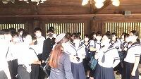 学級別行動が始まりました。7組でしょうか?北野天満宮での生徒の様子が送られてきました。