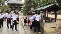 学級別行動が始まりました。7組でしょうか?北野天満宮での生徒の様子が送られてきました。
