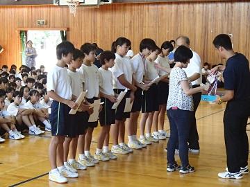 昨日の集会で、夏休み中の表彰がありました。