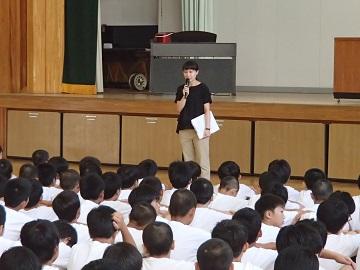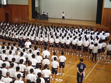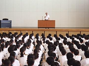 多くの生徒の感想を読みました。講演会を実施してよかったと感じました。生徒がよく学び、よく考える姿勢があったから実現したと思います。暑い体育感の中で、相手の気持ちになって、話を聞くことができました。素晴らしい3年生でした。