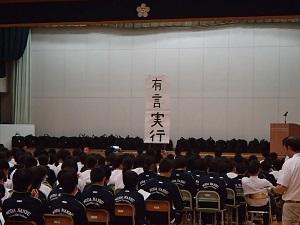 提案1として、「挨拶」については、心のこもった挨拶を交わすことで、学校の雰囲気をよくすることができる。目を合わせて、大きな声で挨拶をしよう。人とのコミュニケーションの「第一歩」と力説しました。提案2として、「清掃」については、昨年度「無言清掃」を意識しすぎました。今年度は、きれいにする事に着目し、「気づきの清掃」を提案しました。