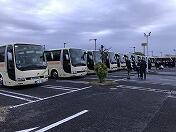 するとその駐車場になぜか、14台のバスが止まっているではありませんか。