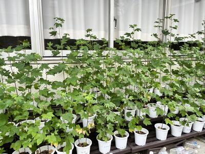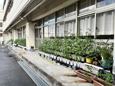 技術の授業で育てているワタ(綿)も元気です。台風上陸前も3年生の生徒や松尾先生(3学年技術)が自主的に水やりや様子を見に来てくれていました。多くの愛情でスクスク育っています。