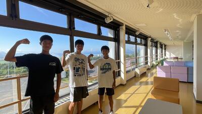 バスケ部の松尾君、岩本君、金澤君はバスケ合宿からすぐに駅伝合宿に参加しています。
