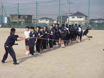 冬休み前の学級の時間を使い、1年生(根本主任)は、南部スポーツ広場で学年レク「大縄跳び」を実施ました。結果は、1位:4組、2位:7組、3位:2組でした。写真は、本番前の練習風景です。学級担任が熱い指導を投げかけていました。
