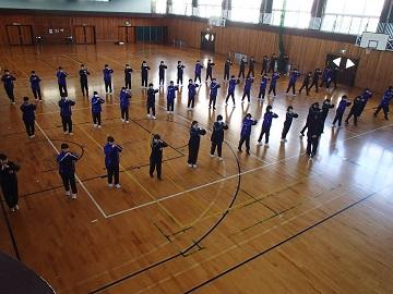本日、学校で部活動を実施したのは、水泳部と吹奏楽部でした。水泳部は、体力強化として、トレーニング及びサッカーを行いました。吹奏楽部は、体育館でマーチングでの歩き方を中心に前進・後進を繰り返し練習していました。午後からは、楽器を持って移動練習を行う予定です。最後に音楽室等の大掃除も行います。