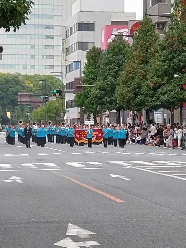 午前中は、高崎駅前のメインロード(シンフォニーロード)にて行われた、パレードへの参加。メインロードを全車線規制し、高崎市の小中学校を始め25の団体がパレードを行い、南部中は【セントアンソニーマーチ】【宝島】【カーニバる?】【Victory】を演奏しました。