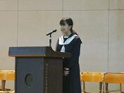 続いて文化の部①では、11月8日に行われる野田市内弁論大会で学校代表として発表する野澤君の弁論、9月に行われた葛北支会英語スピーチコンテストで発表した伊藤さんの発表です。