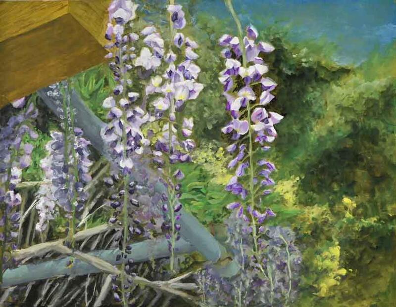 緑に映える藤の花の美しさを描くと共に、その季節の魅力までも伝える表現になっています。花びらの表現など筆づかいもよく工夫し、自分の思いを素直に表現した作品です。