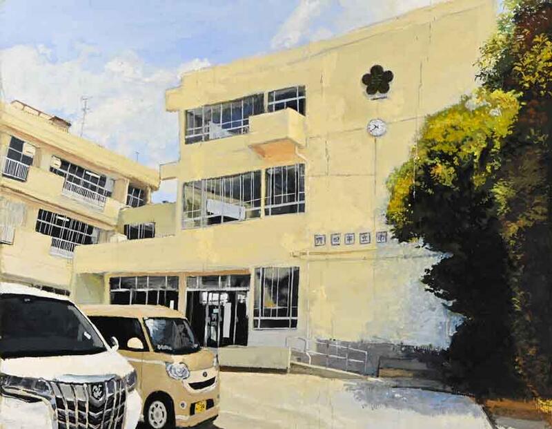 「校風」と題する作品に見る方も襟を正したくなる学校愛を感じる作品です。玄関や教室の窓の明暗を的確に描き分けた観察力と、豊かな色彩感覚を感じさせる作品です。