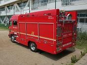 校庭に消防車が止まっています。