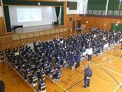勉励賞をはじめ、各部活動や作文等における表彰では、誇らしげな表情で賞状やトロフィーを受け取る姿が見られました。そして、各部活動の部長紹介がありました。