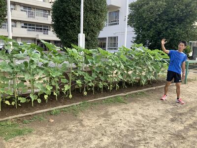 特別支援学級の生徒が植えてくれたひまわりが蕾をつけ始めました。嬉しそうに説明してくださった駅伝部顧問、特別支援学級担任の井上先生。駅伝部の生徒たちもきっと蕾をつけ始め、そして夏後半から秋にかけて大きな花を咲かせることでしょう。