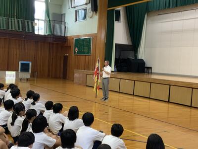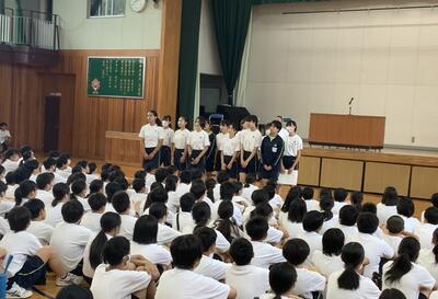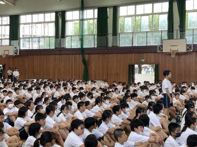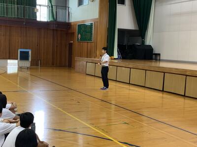 3年生大竹さんは夏休みの生活について、早寝早起きなど生活リズムを整えること、交通安全に気を配ること、SNSを通じたトラブルに巻き込まれないようにするなどの話がありました。