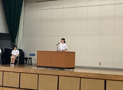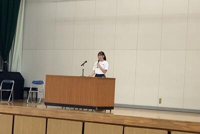 1年生加瀨さん「挨拶や部活動、係活動など先輩や先生方とのつながりを育むことができました。まだ授業中の姿勢に課題があるので,直していきたいです。夏休み明けには定期テストや体育祭がひかえていますが、先輩方と協力していきたいです。また、部活動の先輩方を目指して頑張りたいです。」