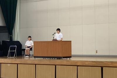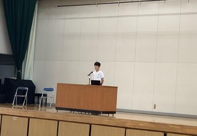 3年生椎山君からは学習について、3年生は高校見学で学校の雰囲気を知ってきて欲しいことと、1,2年生は夏休みで自分弱点を知ると言うことと、課題はできるものから進めていくことで、たまることなく終えることができますと話がありました。