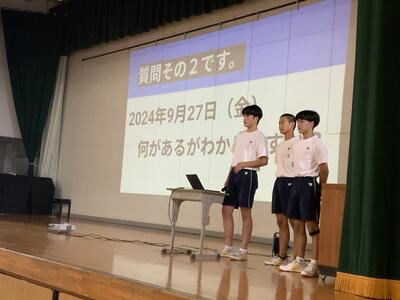 2年生井上さん「2年生になり、部活動や委員会活動など、1年生を引っ張っていく場面がありました。生徒総会でさらに意識が高まり、委員会活動も学年全体で成長することができました。その他にも挨拶や移動時の姿勢なども成長しました。部活動も3年生が引退した後は、2年生が新チームを引っ張っていけるように頑張りたいです。」