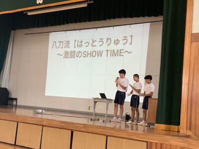 まずは部活動の表彰が行われました。顧問の先生から熱い言葉と、県大会の日程などが話されました。