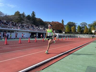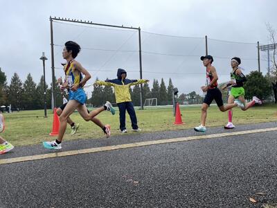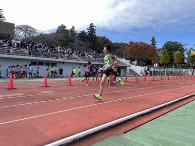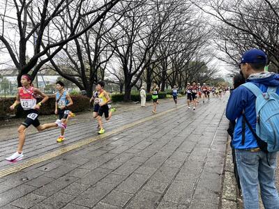 1区、各校のエース級が集まる中、土谷君が13位の好スタート。混戦でプレッシャーがかかる2区は佐々木君。14位で粘り、エース飯塚君へ。そして圧巻の8人抜きで一気に6位へ!4区原君、5区鈴木君の2年生コンビが上位をキープして7位。アンカーは大混戦で、池田君がなんとか粘り10位でゴール!