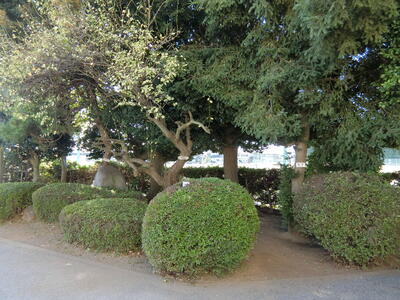 そんな中、いきいきクラブの方々が正門付近の樹木を美しくしてくださりました。長年培ってこられたプロフェッショナルな技術、あっという間に整ってく樹木にびっくりでした。