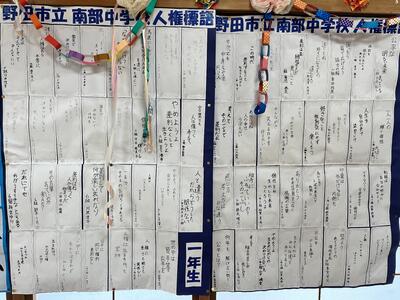島集会所には山崎小、みずき小、南部中の児童生徒の人権に関する作品が掲示されていました。